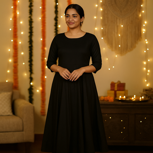Zyra Bloom – Festive Flared Anarkali Kurti (Black, Glace Cotton)